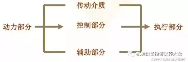 從圖中可以看出,液壓傳動是以液體作為工作介質(zhì)來進行工作的,一個完整的液壓傳動系統(tǒng)由以下幾部分組成:動力部分、控制部分、輔助部分和執(zhí)行部分。