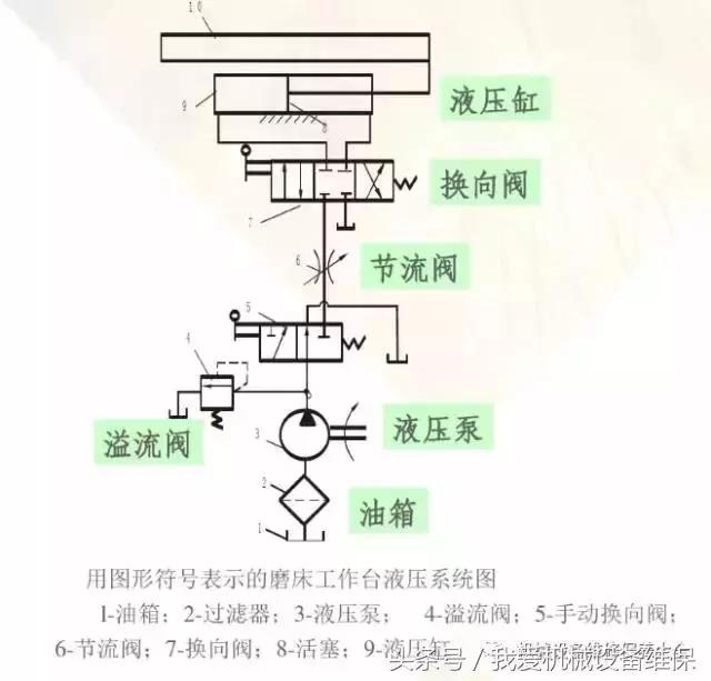 上圖磨床工作臺液壓系統(tǒng)圖中,圖形符號表示元件的功能,而不表示元件的具體結(jié)構(gòu)和參數(shù);反映各元件在油路鏈接上的相互關(guān)系,不反映其空間安裝位置;只反映靜止位置或出事位置的工作狀態(tài),不反映其過渡過程。